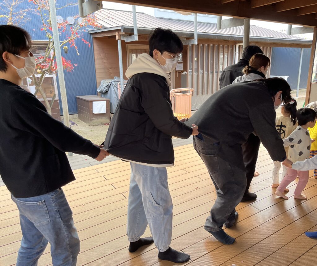きょうはA1クラスとA2クラスのみなさんが、おなじ熊取町(くまとりちょう)の「アトムほいくえん」へいきました。